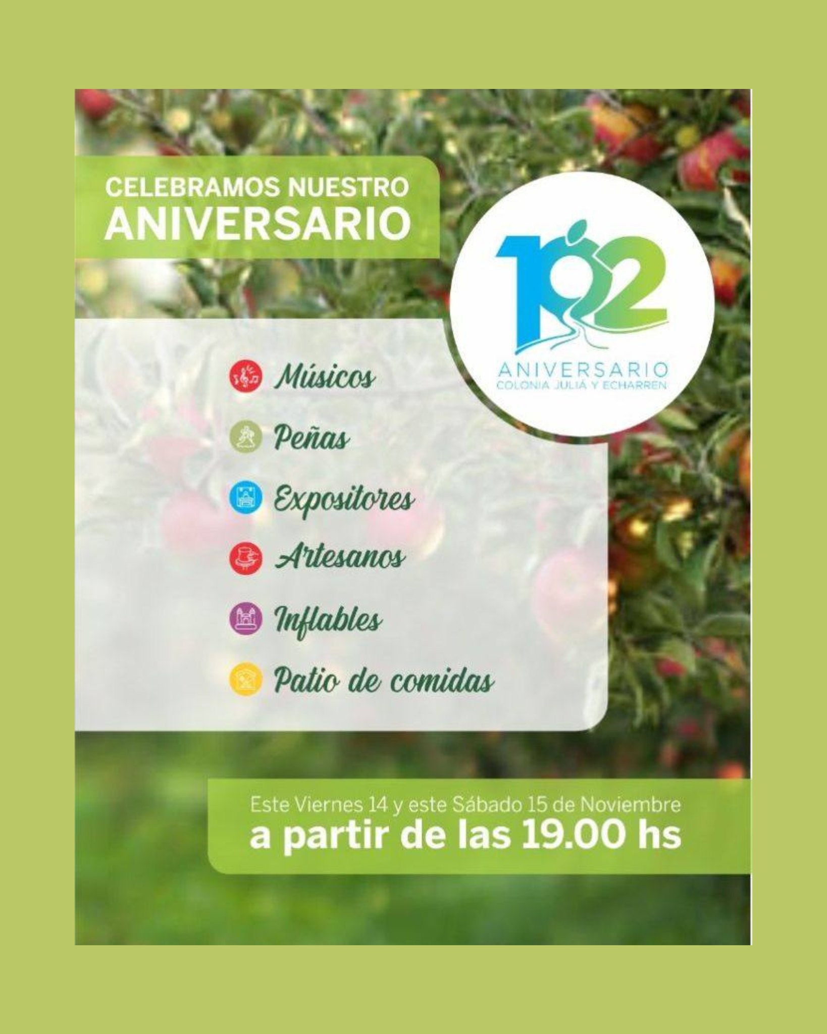 La celebración, que se desarrollará durante este fin de semana, incluirá un acto protocolar con la presencia del intendente de Río Colorado, Duilio Minieri , y espectáculos artísticos con peñas y la presentación del cantautor local Roberto Errotabere.