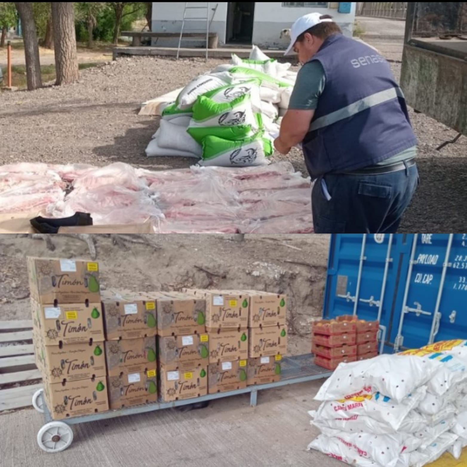 En un segundo operativo, en el Puesto del Km 714 de la Ruta Nacional N°3, se incautaron 2.389 kg de productos frutihortÃcolas, entre ellos limones, batatas, peras y mango. Estos productos no contaban con la documentación sanitaria requerida y, en el caso de las peras y el mango, tampoco con el tratamiento cuarentenario necesario para prevenir la plaga de la Mosca de los Frutos. Tras verificar su aptitud para el consumo, la mercaderÃa fue donada a entidades de bien público al norte de la barrera sanitaria.