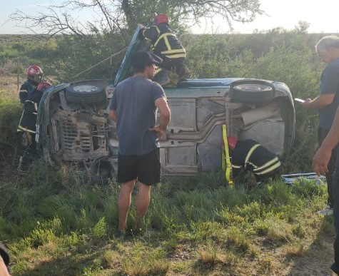 El siniestro se registró pasadas las 17:30. Por causas que aún se investigan, un vehÃculo Renault 9 protagonizó el vuelco. En el rodado viajaban dos personas: el conductor y un menor de edad. Ambos fueron rescatados y trasladados al hospital Zatti de Viedma para su atención médica.
