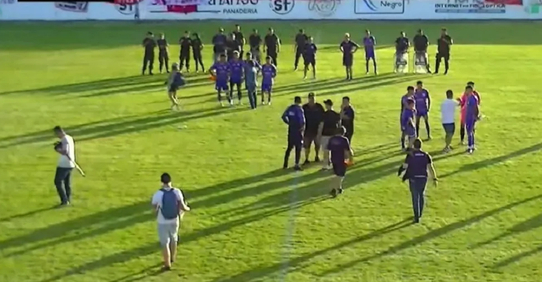 La PolicÃa de RÃo Negro y el grupo especial COER intervinieron de inmediato para intentar calmar la situación y proteger a los árbitros, quienes terminaron escoltados hacia el vestuario.