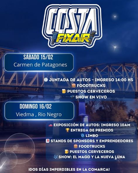 Este 15 y 16 de febrero, la pasión por los autos y el sonido de los motores se adueñará de la Comarca Viedma-Patagones con Costa Fix Air, un evento imperdible para los amantes del mundo tuerca.