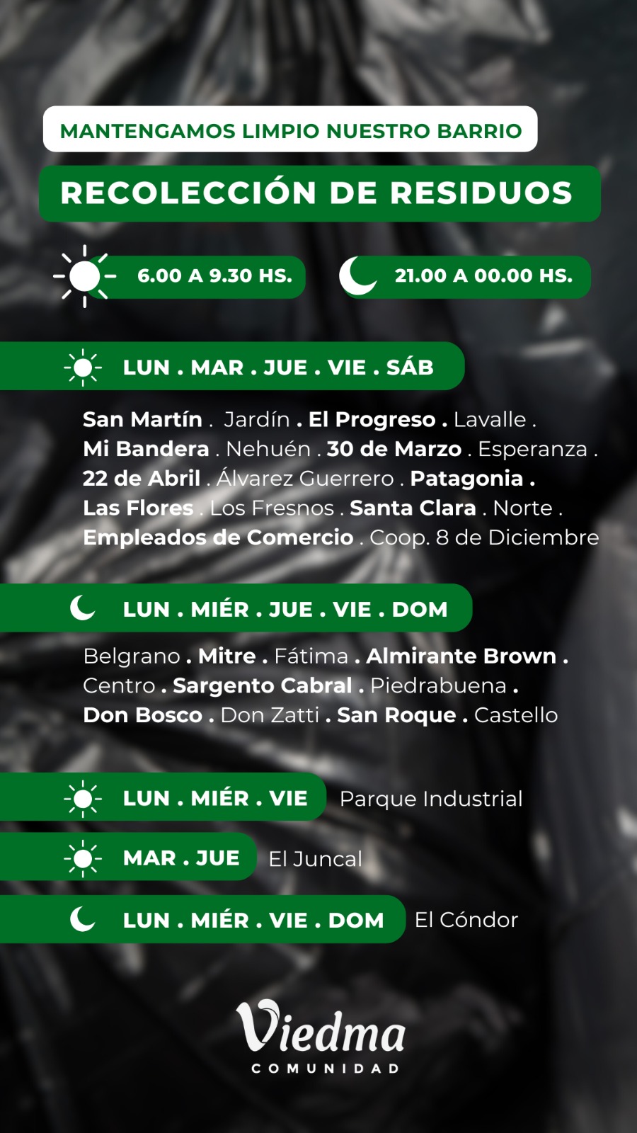 La Municipalidad de Viedma informa sobre el sistema de recolección de residuos y nuevas disposiciones para optimizar el servicio.