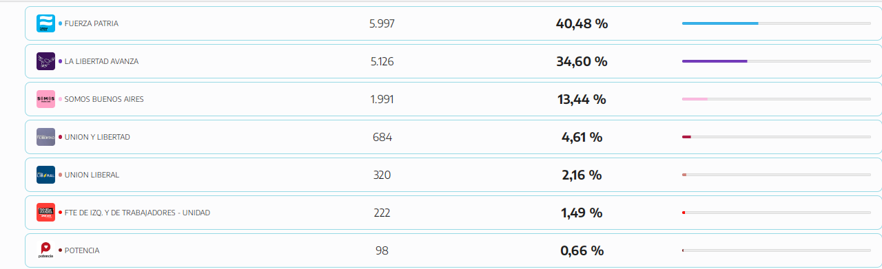 Por localidad y por partido con el 100% de las mesas escrutadas
