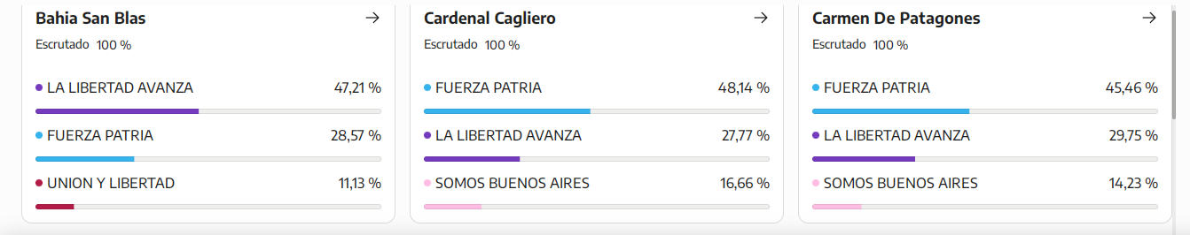 Por localidad del Partido de Patagones. Fuente resultados. eleccionesbonaerenses.gba.gob.ar