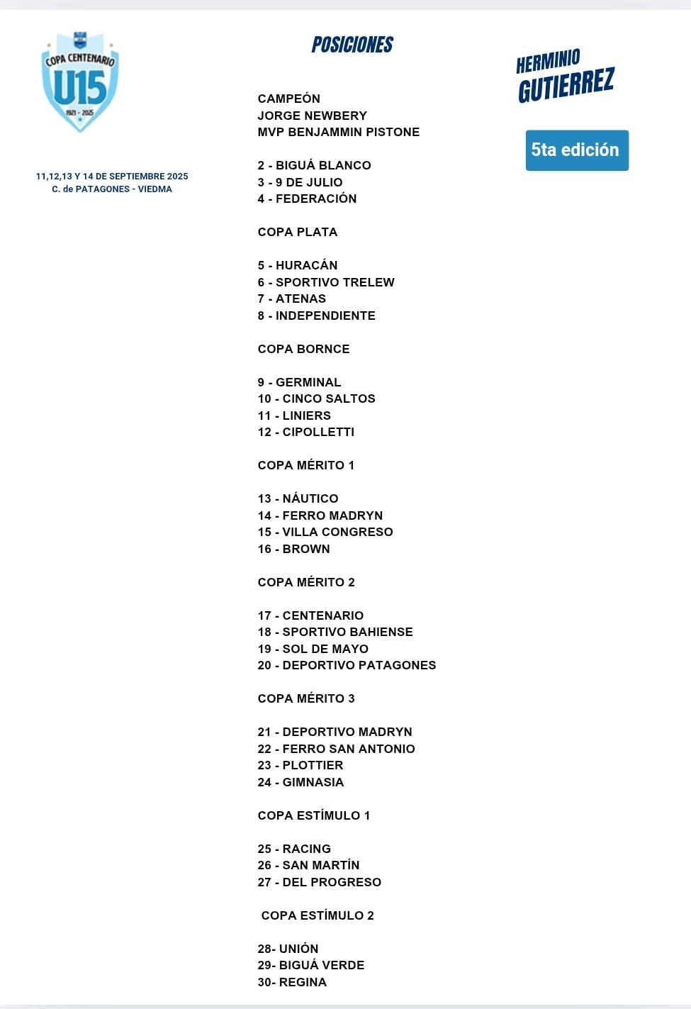 Con la participación de 30 equipos, los chicos de la categoría U15 de diferentes regiones tuvieron un fin de semana a pura competencia. en Carmen de Patagones.