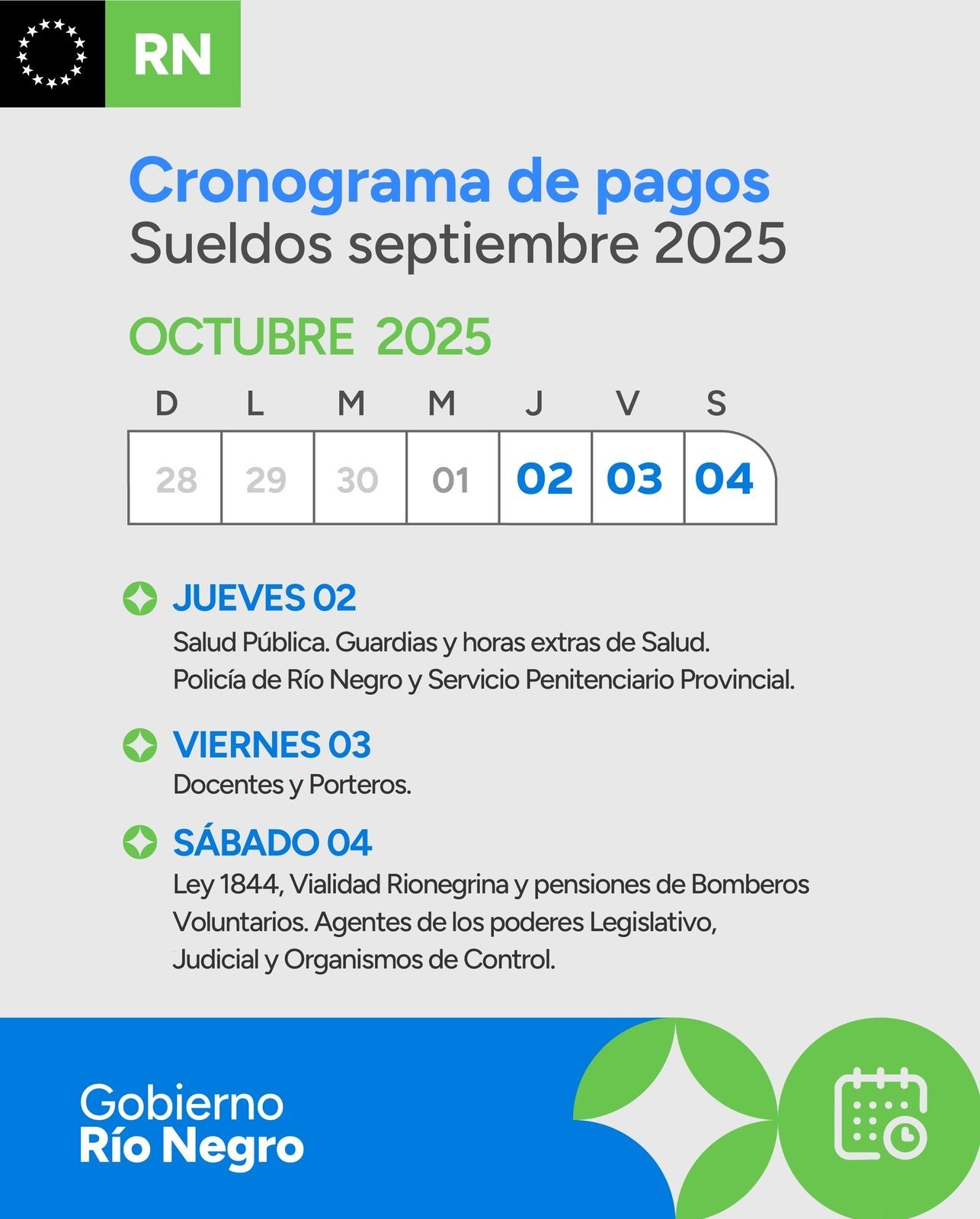El jueves 2 de octubre se iniciará el cronograma de pago de salarios al personal de la Administración Pública Provincial.