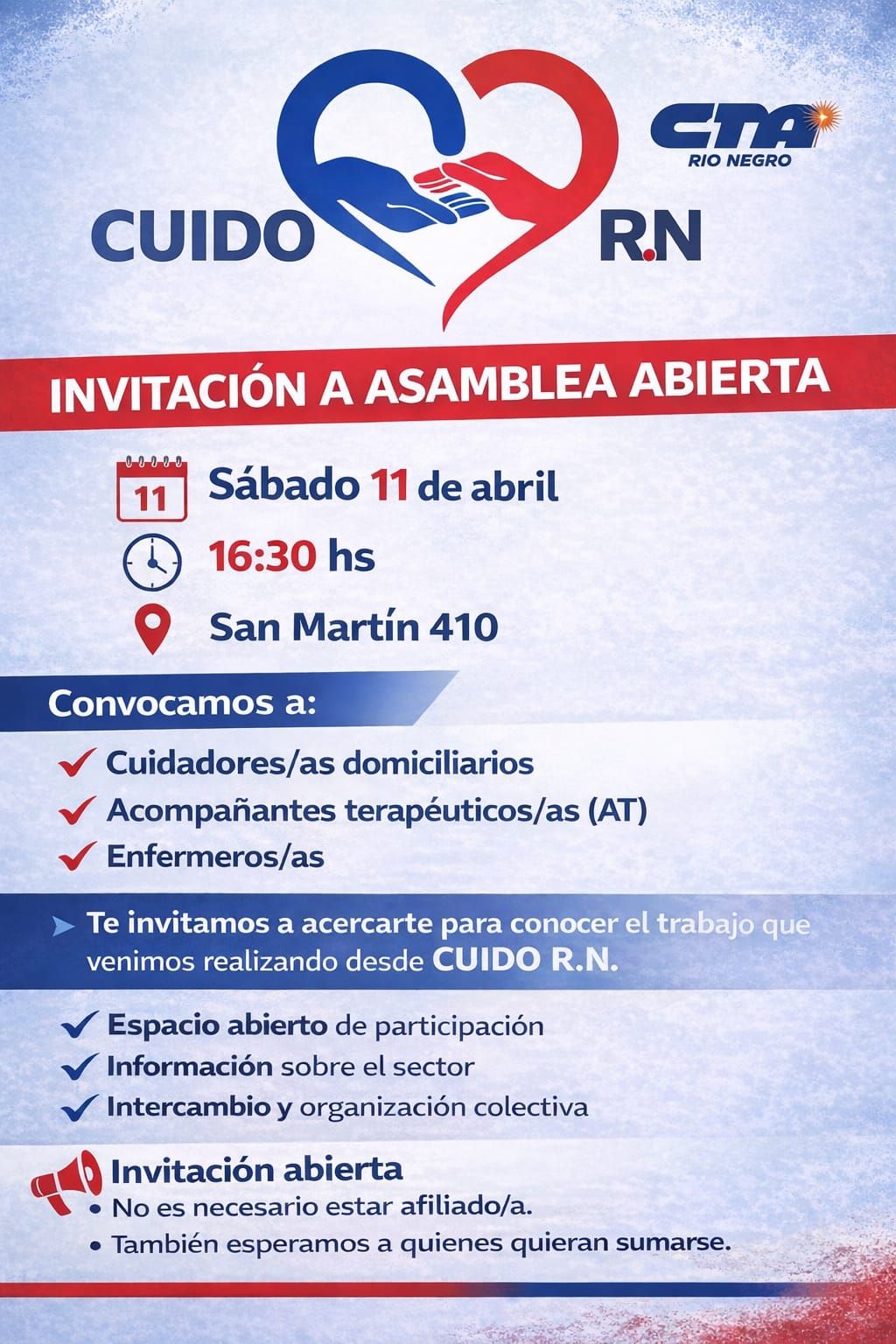 En el cierre del encuentro, CUIDO R.N. lanzó una invitación a una nueva asamblea abierta, con el objetivo de seguir sumando trabajadores y trabajadoras del sector.